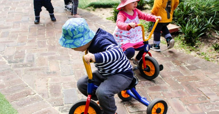 Through activities such as riding tricycles, swinging, and running, children increase their large muscle use. This increase in physical activity supports children’s gross motor development and overall health.